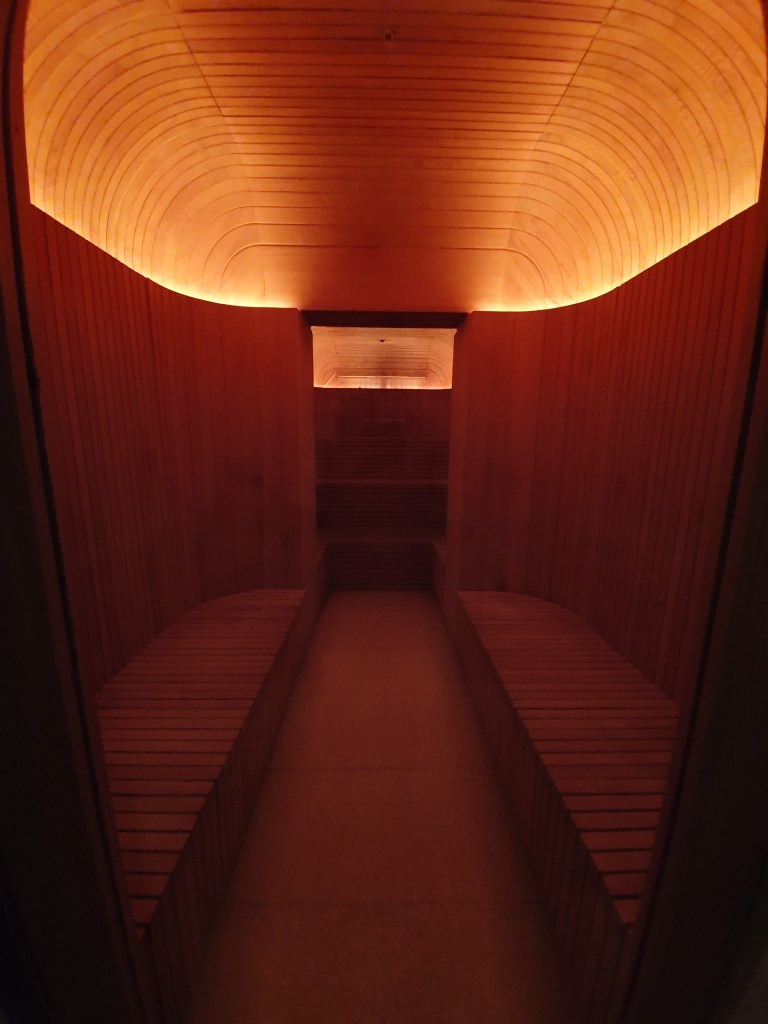 The room was quiet and dark (no windows, remember) and the bed is comfortable, so totally restful at night.