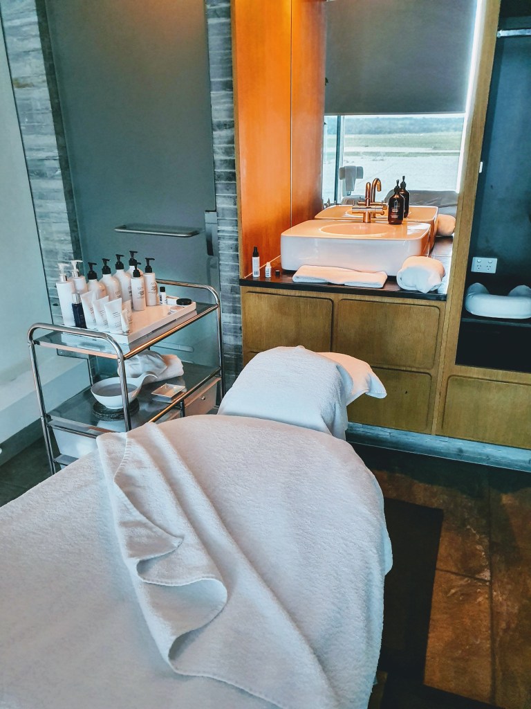 Here’s a tip: put your name down as soon as you arrive for a massage or facial in the spa. That’s right… there’s a luxury spa in the lounge. I had the men’s detox facial and returned to the lounge feeling even more blissed. Seriously, I don’t know how anyone travels without a pre-flight spa treatment.