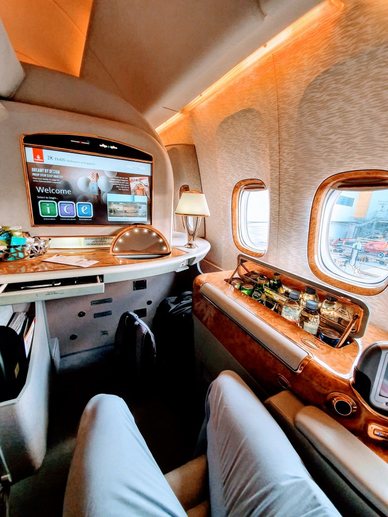 Early in the year (whilst surfing Qantas’s booking engine – as I often do) I stumbled on a First Class Award flight, Melbourne to Singapore, on Emirates on a date that worked for me. I’d had no plans to visit Singapore, but the lure of my first ever first class flight was more than I could resist. It would prove to the best 90,000 points and $300 (taxes and carrier fees) I have ever spent in the air.