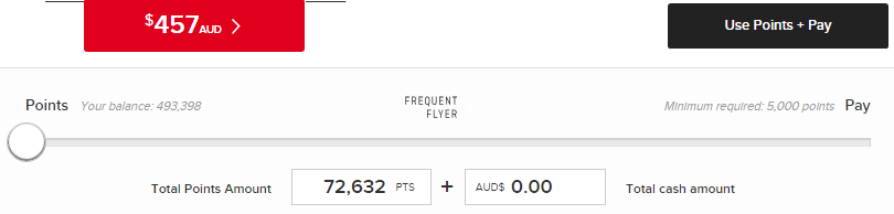 Here’s another way to spend (waste) your points. Qantas let’s you do ‘points plus pay’ on a range of products and services, including flights and hotel bookings. This example shows you getting a $457 hotel booking for 72,632 points – or 0.63 cents per point. Better than a toaster, but I’m still not satisfied.