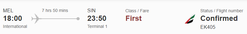 Early in the year (whilst surfing Qantas’s booking engine – as I often do) I stumbled on a First Class Award flight, Melbourne to Singapore, on Emirates on a date that worked for me. I’d had no plans to visit Singapore, but the lure of my first ever first class flight was more than I could resist. It would prove to the best 90,000 points and $300 (taxes and carrier fees) I have ever spent in the air.